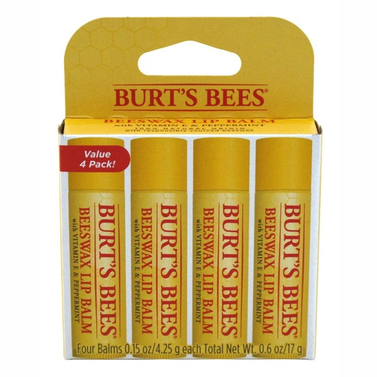 Burts Bees Lip Balm Beeswax Vitamin E/Peppermnt 4Pk (4in)