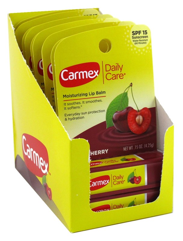 Carmex Lip Balm Stick Cherry Spf#15 0.15oz (12in) Display