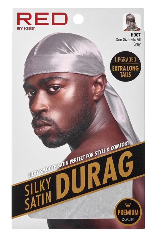 Kiss Red Durag Silky Satin Gray Extra Long Tails (12in)