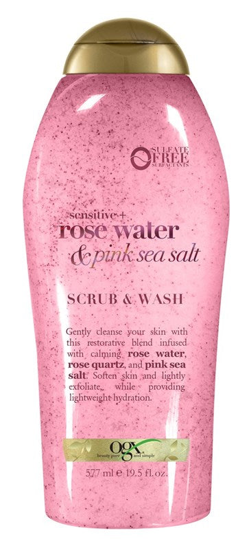 Ogx Body Scrub & Wash Rose Water & Pink Sea Salt 19.5oz