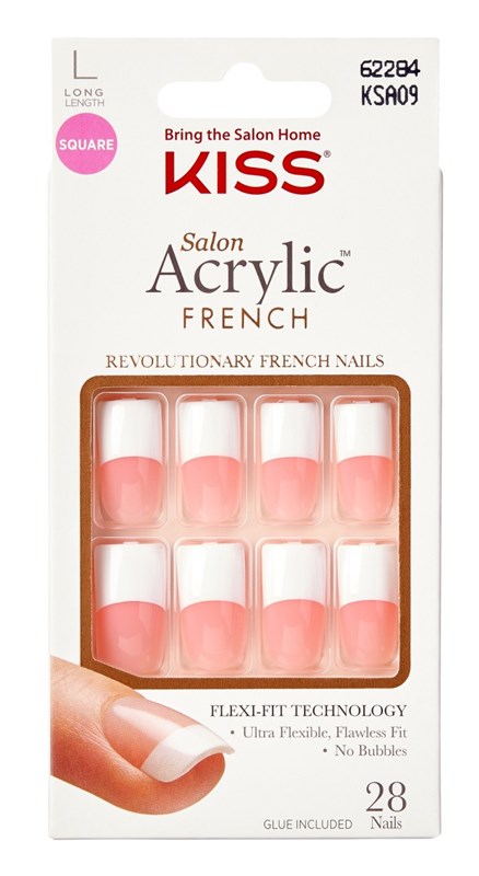 Kiss Salon Acrylic French 28 Count Long Length Pink